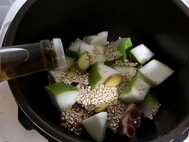 如果你吃素,也可以跟着大明星曾黎来煲汤。用干莲子、山药片、薏米、红枣、陈皮一起煲汤,大火煮 15 分钟后转小火煮 30 分钟。冬瓜其实和很多健脾祛湿的食材都很搭配,因为祛湿的关键在于健脾。脾胃功能好了,就能更好地运化水湿,让湿气随着出汗和二便一起排出体外。
